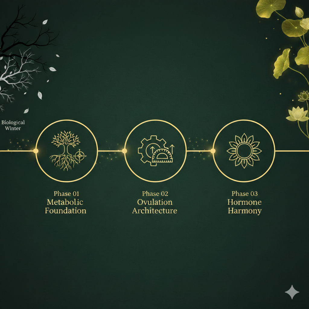 The Fertile PCOS Clinical Blueprint™ is not a generic protocol. It is a sophisticated, three-stage framework designed to move your body from "Biological Winter" into a state of fertile safety.